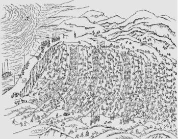 1590年,本朝的一个被称为“方大醉”的下级军官,听到军士报称蒙古骑兵侵掠边境,他就单人独马冲到出事的地方。蒙古人准备答话,此人乃一介武夫,一言不发,举刀就砍。蒙古人在退走时拔箭射中了这位莽汉,致使他第二天创发身死。于是军中群情激愤,坚决要为他报仇。洮泯副总兵李联芳追逐敌军,遇伏阵亡。报告送到北京,议论就哄然而起,大都主张停止互市,出兵作战。顺义王撦力克也作了战争的准备,渡过黄河,即将陷洮河,入临巩。情势如箭在弦上,一触即发。