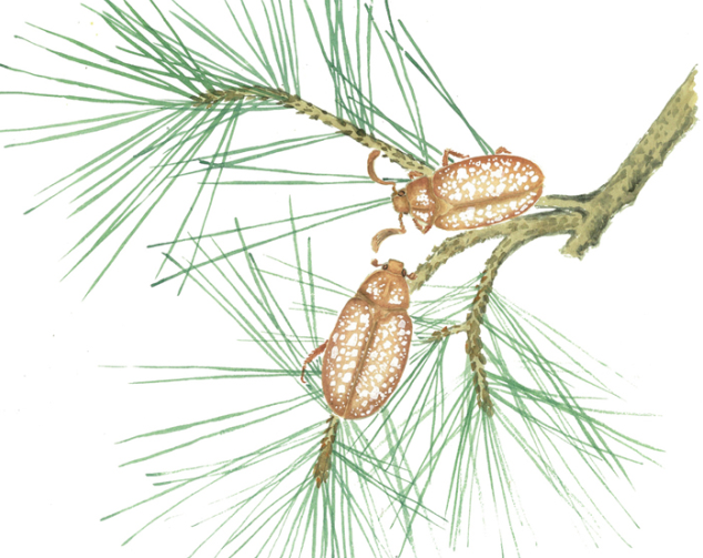 在将来会把不合时宜的“缩绒工”这个词抛弃之前,我们先把它叫做松树鳃角金龟吧。用这个名称谁也不会搞错,因为我们的这个昆虫只光顾松树。