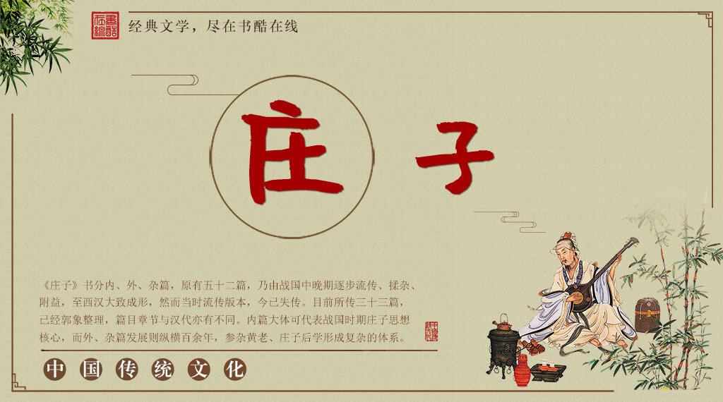 《庄子》书分内、外、杂篇,原有五十二篇,乃由战国中晚期逐步流传、揉杂、附益,至西汉大致成形,然而当时流传版本,今已失传。目前所传三十三篇,已经郭象整理,篇目章节与汉代亦有不同。内篇大体可代表战国时期庄子思想核心,而外、杂篇发展则纵横百余年,参杂黄老、庄子后学形成复杂的体系。
