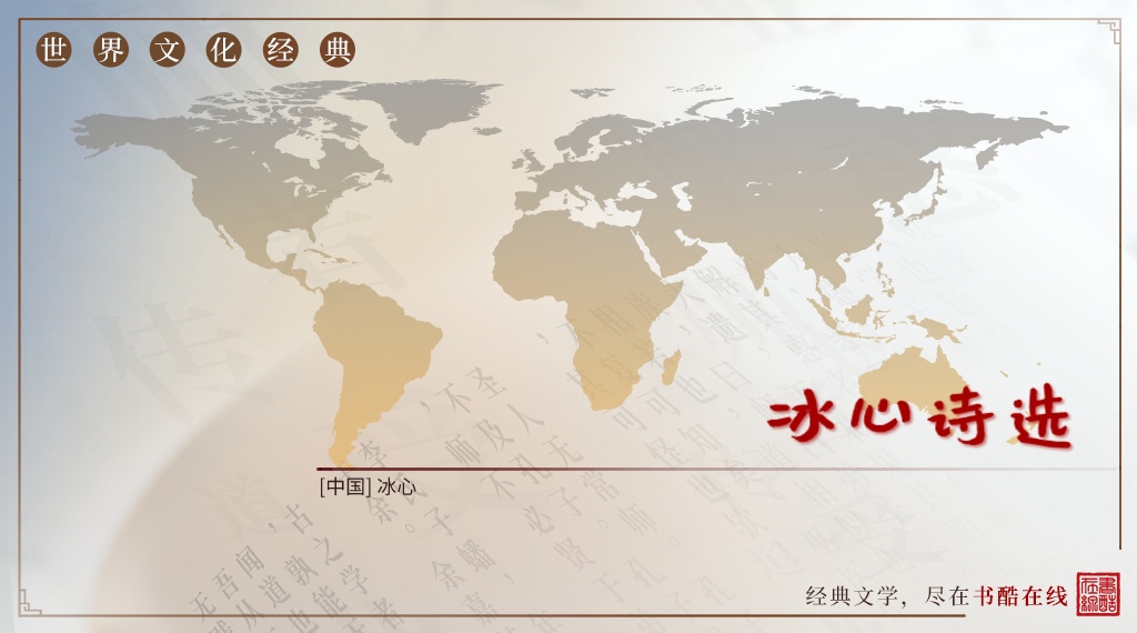 作者:[中国]冰心 作品简介: 著名诗人冰心诗歌选集,以飨诗友。 声明:本书内容(如有图片或音频亦包括在内)为平台用户 荒草 上传并发布,本平台仅提供信息存储服务。如有侵权,请联系本站责任编辑,情况核实后将24小时内删除!