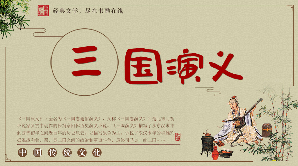 全书可大致分为黄巾起义、董卓之乱、群雄逐鹿、三国鼎立、三国归晋五大部分。在广阔的历史舞台上,表现了一幕幕气势磅礴的战争场面。作者罗贯中将兵法三十六计融于字里行间,既有情节,也有兵法韬略。《三国演义》是中国文学史上第一部章回小说,是历史演义小说的开山之作,也是第一部文人长篇小说,中国古典四大名著之一。